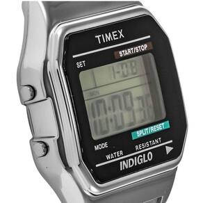 Relógio Timex Masculino Digital Clássic T78587 TimexModelo T78587Número da peça T785879JQuadrado da Forma do ItemTipo de material da janela do mostrador AcrílicoTipo de Exibição DigitalBanda de expansão de fechoMaterial da Caixa ResinaDiâmetro da caixa 34 milímetrosEspessura da caixa 10 milímetrosMaterial da pulseira Aço inoxidávelTamanho da banda Mens StandardLargura de banda 18 milímetrosFaixa Cor PrataMaterial da moldura ResinaFunção bisel EstacionárioCalendário Dia-Data-MêsCaracterísticas especiais Cronógrafo, resistente à água, luminosoMovimento QuartzoProfundidade resistente à água 30 metros