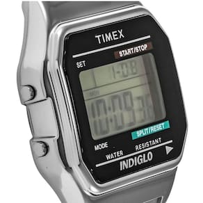 Relógio Timex Masculino Digital Clássic T78587 Timex Modelo T78587 Número da peça T785879J Quadrado da Forma do Item Tipo de material da janela do mostrador Acrílico Tipo de Exibição Digital Banda de expansão de fecho Material da Caixa Resina Diâmetro da caixa 34 milímetros Espessura da caixa 10 milímetros Material da pulseira Aço inoxidável Tamanho da banda Mens Standard Largura de banda 18 milímetros Faixa Cor Prata Material da moldura Resina Função bisel Estacionário Calendário Dia-Data-Mês Características especiais Cronógrafo, resistente à água, luminoso Movimento Quartzo Profundidade resistente à água 30 metros Marca: Não Informado
