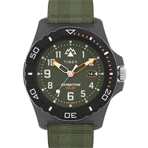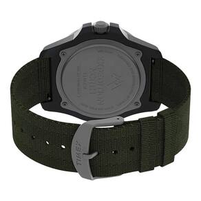 Características: com caixa em Resina Preta e pulseira em Tecido Verde