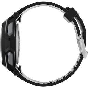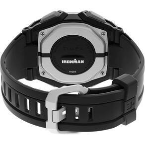 Funções: Digital, Iluminação Indiglo Night Light , Calendário, Cronógrafo de 10 voltas, 2 Alarmes, Timer, Sinal Horário Opcional, Batimento Cardíaco Resistência à Água: 50m Diâmetro da Caixa: 46 mm Características: com caixa em Resina Preto e pulseira em Poliuretano Preta Vidro: acrílico Fundo Parafusado Alimentação do maquinário: Bateria Mostrador Preto com detalhes em vermelho Linha: Timex Ironman Heart Rate