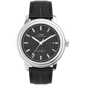 Relógio Timex Waterbury Metropolitan Automático TW2Y23000 Com design sofisticado, o Waterbury Automatic traz caixa de 41 mm em aço inoxidável com aro de dois níveis, mostrador preto com marcadores chanfrados, ponteiros elegantes e data às 3h. Completa o visual uma pulseira de couro preto com textura de crocodilo, de origem ética certificada pelo Leather Working Group LWG , e fecho dobrável. Especificações Técnicas Mecanismo: Automático Máquina Miyota com reserva de marcha de 40h. Gênero: Masculino Visor: Preto Vidro: cristal mineral Funções: case back transparente com máquina aparente, tampa rosqueada. Prova d'água: 50m Características: caixa em aço inoxidável, pulseira em couro natural com textura crocodilo, Diâmetro da caixa: 41 mm Largura da Pulseira: 20 mm : 1 ano pelo fabricante Timex Marca: Não Informado Ean: 7909669200703