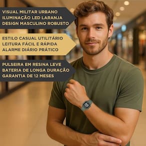 Adote um estilo prático e moderno com o relógio Tokaia W-217H-3AV. Com visual inspirado no militarismo urbano, seu mostrador grande em verde fosco garante excelente visibilidade e um toque de atitude. Ideal para o uso diário, oferece conforto com sua estrutura leve e funcionalidades úteis como alarme diário, cronômetro e luz de fundo LED laranja. Com resistência à água de até 50 metros e bateria com duração de 7 anos, este relógio foi feito para acompanhar todas as suas jornadas.