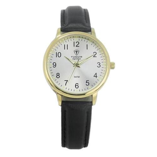 Características: com caixa em Metal e pulseira em Couro Ecológico Preto
