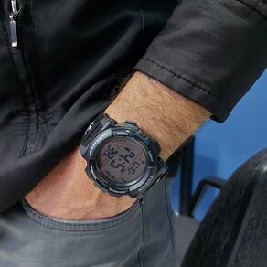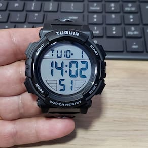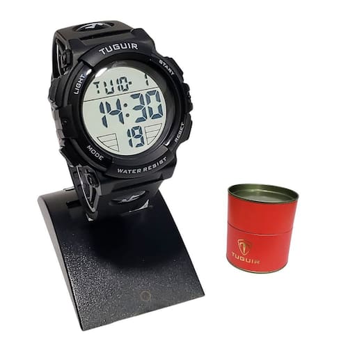 Marca: Tuguir Modelo: TG132 Tipo de relógio: Digital Gênero: Masculino Cor da caixa: Preto Cor da pulseira: Preto Estilo: Esportivo Alarme: Sim Cronômetro: Sim Calendário: Sim Luz: Sim Resistência à água: Sim – 5 ATM = 50 metros Tipo de fecho: Fivela simples Material da Caixa: Resina Material da Pulseira: Resina Características do vidro: Cristal mineral Tamanho da caixa: 50 mm Espessura da caixa: 18 mm Comprimento da pulseira: 28 cm Largura da pulseira: 20 mm Tampa do fundo: Pressão Peso: 60 Gramas Alimentação: Bateria Garantia do Fabricante: 12 meses Fabricante: TUGUIR – Indústria e Comércio de Artigos de Relojoaria e de Vestuário da Amazônia EIRELI