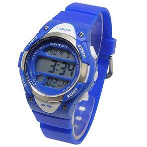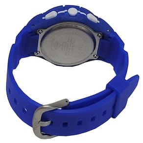 Funções: Digital, Calendário, Iluminação, Alarme, Cronógrafo Resistência à Água: 50m Diâmetro da Caixa: 38 mm Características: com caixa em Policarbonato Azul e pulseira em Poliuretano Azul Vidro: Acrílico Fundo Parafusado Alimentação do maquinário: Bateria Mostrador Azul com detalhes em branco