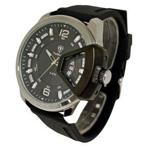 Características: com caixa em Metal e pulseira em Silicone Preto