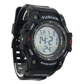 Características: com caixa em Policarbonato preto com detalhes em vermelho e pulseira em Poliuretano Preto