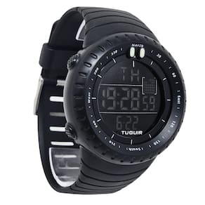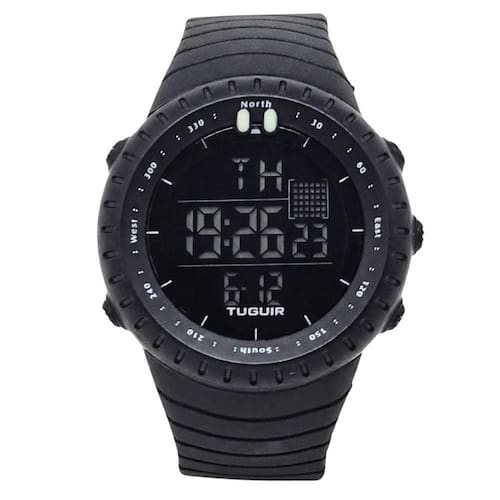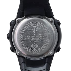 Características: com caixa em Policarbonato preto e pulseira em Poliuretano Preto