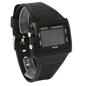 Marca: Onix Categoria: Digital Analógico: Não Digital: Sim (1 Horário) Calendário: Sim Despertador: Sim Mostra o Dia da Semana: Sim Mostra o Dia do Mês: Sim Cronômetro: Sim Luz: Sim Cor da Iluminação: Verde Resistente à Água: 5 ATM - Respingos: Sim - Chuva: Sim - Lavar Carro: Sim - Lavar Louça: Sim - Natação: Sim - Mergulho: Não Característica do Vidro: Acrílico Tipo de Fecho: Fivela Cor da Caixa: Preto Material da Caixa: Plástico Formato da Caixa: Quadrado Comprimento da Caixa: 33,00 (mm) Largura da Caixa: 43,00 (mm) Espessura da Caixa: 13,00 (mm) Cor da Pulseira: Preto Material da Pulseira: Plástico Largura da Pulseira: 20,00 (mm) Comprimento Máximo da Pulseira: 250,00 (mm) Alimentação: Bateria Interna Peso Líquido: 0,043 Kg Modelo: IT-1329H Cor Predominante: Preto Garantia: 12 Meses