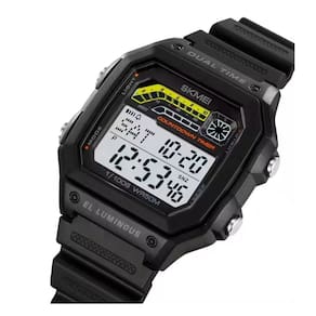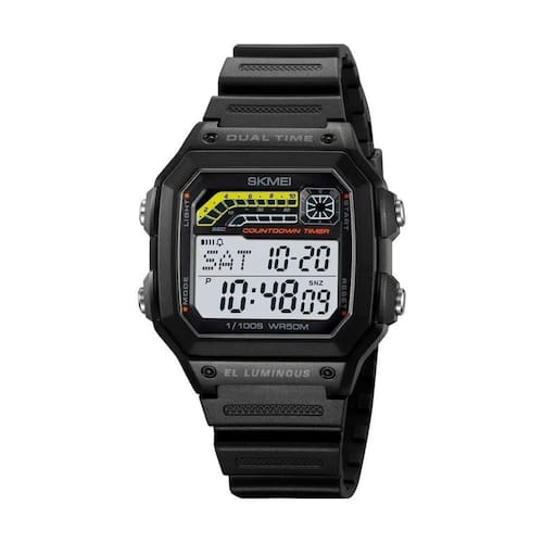 Marca: Skmei Categoria: Calendário: Sim Despertador: Sim Mostra o Dia da Semana: Sim Mostra o Dia do Mês: Sim Cronômetro: Sim Contador Regressivo: Sim Luz: Sim Cor da Iluminação: Azul Resistente à Água: 5 ATM - Respingos: Sim - Chuva: Sim - Lavar Carro: Sim - Lavar Louça: Sim - Natação: Sim - Mergulho: Não Característica do Vidro: Acrílico Tipo de Fecho: Fivela Cor da Caixa: Preto Material da Caixa: Plástico Formato da Caixa: Quadrado Comprimento da Caixa: 45,00 (mm) Largura da Caixa: 40,00 (mm) Espessura da Caixa: 13,50 (mm) Cor da Pulseira: Preto Material da Pulseira: Plástico Largura da Pulseira: 18,00 (mm) Comprimento Máximo da Pulseira: 260,00 (mm) Alimentação: Bateria Interna Peso Líquido: 0,042 Kg Modelo: 2307 Cor Predominante: Preto Garantia: 12 Meses