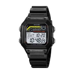 Relógio Unissex Skmei 2307 Preto Relógio Unissex Skmei 2307 Preto Marca: Skmei Categoria: Calendário: Sim Despertador: Sim Mostra o Dia da Semana: Sim Mostra o Dia do Mês: Sim Cronômetro: Sim Contador Regressivo: Sim Luz: Sim Cor da Iluminação: Azul Resistente à Água: 5 ATM Pode ser Utilizado para nadar no raso, por pouco tempo submerso - Respingos: Sim - Chuva: Sim - Lavar Carro: Sim - Lavar Louça: Sim - Natação: Sim - Mergulho: Não Característica do Vidro: Acrílico Tipo de Fecho: Fivela Cor da Caixa: Preto Material da Caixa: Plástico Formato da Caixa: Quadrado Comprimento da Caixa: 45,00 mm Largura da Caixa: 40,00 mm Espessura da Caixa: 13,50 mm Cor da Pulseira: Preto Material da Pulseira: Plástico Largura da Pulseira: 18,00 mm Comprimento Máximo da Pulseira: 260,00 mm Alimentação: Bateria Interna Peso Líquido: 0,042 Kg Modelo: 2307 Cor Predominante: Preto : 12 Meses Conteúdo da Embalagem: 01 Relógio 01 Embalagem 01 Termo de