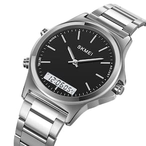 Relógio Unissex Skmei AnaDigi 2120 Prata Relógio Unissex Skmei AnaDigi 2120 Prata Marca: Skmei Categoria: AnaDigi Analógico: Sim 1 Horário Ponteiros Fluorescentes: Não Digital: Sim 1 Horário Calendário: Sim Despertador: Sim Mostra o Dia da Semana: Sim Mostra o Dia do Mês: Sim Cronômetro: Sim Contador Regressivo: Não Luz: Sim Cor da Iluminação: verde Resistente à Água: 3 ATM Resiste a imersões breves - Respingos: Sim - Chuva: Sim - Lavar Carro: Sim - Lavar Louça: Sim - Natação: Não - Mergulho: Não Característica do Vidro: Cristal Mineral Tipo de Fecho: Dobrável com Botão Cor da Caixa: Prata Material da Caixa: Metal Banho IP Formato da Caixa: Redondo Diâmetro da Caixa: 38,00 mm Espessura da Caixa: 10,00 mm Cor da Pulseira: Prata Material da Pulseira: Metal Largura da Pulseira: 18,00 mm Comprimento Máximo da Pulseira: 215,00 mm Alimentação: Bateria Interna Peso Líquido: 0,080 Kg Modelo: 2120 Cor Predominante: Prata : 12 Meses Conteúdo da Embalagem: 01 Relógio 01 Embalagem 01 Termo de Marca: Não Informado