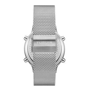 Relógio Unissex Tuguir Digital TG101 - Prata Relógio Unissex Tuguir Digital TG101 - Prata Marca: Tuguir Categoria: Digital Analógico: Não Digital: Sim 1 Horário Calendário: Sim Despertador: Sim Mostra o Dia da Semana: Sim Mostra o Dia do Mês: Sim Cronômetro: Sim Contador Regressivo: Não Luz: Sim Cor da Iluminação: Verde Resistente à Água: 3 ATM Resiste a imersões breves - Respingos: Sim - Chuva: Sim - Lavar Carro: Sim - Lavar Louça: Sim - Natação: Não - Mergulho: Não Característica do Vidro: Cristal Mineral Tipo de Fecho: Gancho Cor da Caixa: Prata Material da Caixa: Metal Banho IP Formato da Caixa: Redondo Diâmetro da Caixa: 43,00 mm Espessura da Caixa: 12,60 mm Cor da Pulseira: Prata Material da Pulseira: Aço Largura da Pulseira: 19,80 mm Comprimento Máximo da Pulseira: 220,00 mm Alimentação: Bateria Interna Peso Líquido: 0,090 Kg Modelo: TG101 Cor Predominante: Prata : 12 Meses Conteúdo da Embalagem: 01 Relógio 01 Embalagem 01 Termo de Marca: Não Informado