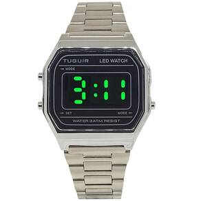 Relógio Unissex Tuguir Digital TG30322 Prata Relógio Unissex Tuguir Digital TG30322 Prata Marca: Tuguir Categoria: Digital Analógico: Não Digital: Sim 2 Horário Calendário: Não Despertador: Não Mostra o Dia da Semana: Não Mostra o Dia do Mês: Não Cronômetro: Não Contador Regressivo: Não Luz: Sim Cor da Iluminação: Resistente à Água: 3 ATM Resiste a imersões breves - Respingos: Sim - Chuva: Sim - Lavar Carro: Sim - Lavar Louça: Sim - Natação: Não - Mergulho: Não Característica do Vidro: Cristal Mineral Tipo de Fecho: Gancho Cor da Caixa: Prata Material da Caixa: Metal Banho IP Formato da Caixa: Quadrado Comprimento da Caixa: 33,50 mm Largura da Caixa: 33,50 mm Espessura da Caixa: 9,50 mm Cor da Pulseira: Prata Material da Pulseira: Aço Largura da Pulseira: 15,00 mm Comprimento Máximo da Pulseira: 230,00 mm Alimentação: Bateria Interna Peso Líquido: 0,060 Kg Modelo: TG30322 Cor Predominante: Prata Garantia: 12 Meses