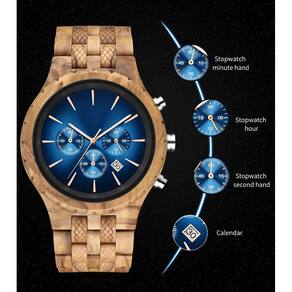 O relógio de madeira de luxo fará você se destacar e é uma nova maneira moderna de mostrar seu estilo pessoal. O material de madeira natural o torna muito confortável de usar no pulso. - O elegante relógio multifuncional de madeira é um relógio muito especial. Leve e muito confortável no pulso. - Todos os materiais naturais são saudáveis e confortáveis (não tóxicos e hipoalergênicos). Sem tinta e sem produtos químicos. Resistência à água no dia a dia. - Relógio de madeira com design exclusivo de cronógrafo e calendário. Movimento multifuncional importado para garantir economia de energia, ultra-silencioso e longa vida útil. A pulseira ajustável vem com ferramenta de ajuste . - O relógio de madeira multifuncional de luxo fará você se destacar e é uma nova maneira moderna de mostrar seu estilo pessoal. O material de madeira natural o torna muito confortável de usar no pulso. - Vem com uma bela caixa de relógio, o que o torna um presente perfeito para Natal, aniversário, Dia dos Namorados, aniversário, etc. O que você está esperando? Este é um maravilhoso relógio de madeira que você não vai querer perder.