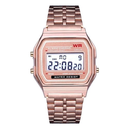 Relógio Wr Digital Aço Vintage Unissex Rose Alarme Top