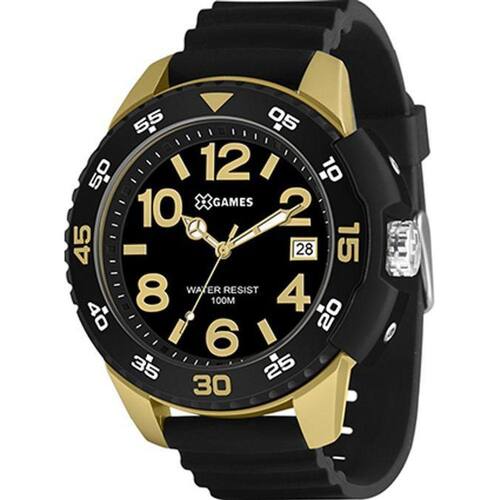Relógio x-games digital masculino xmpp1069 p2px preto/dourado .Relógio x-games digital masculino xmpp1069 p2px preto/dourado Toda esportividade e design moderno da x-games estão presentes nesse relógio produzido com materiais resistentes e de qualidade para voce que pratica esportes como caminhadas, academia, corrida, natação pois é resistente a água, ou para voce que procura um relógio bonito e moderno para uso no dia dia e melhor ainda é fabricado pela orient relógios dando mais segurança e confiabilidade a marcaDescrição do relógioMarca = x-gamesModelo = xmpp1069 p2pxGênero = masculinoMostrador = digital Cor da caixa = preto/douradoCor do bísel = douradoCor da pulseira = pretoCor da fivela = prataCor da coroa = pretoMecanismo = digitalFunções = calandárioFundo = pressão parafusadoResistência à água = 100 metros lavar a mão / chuva / piscina/natação Vidro = acrílicoMaterial da caixa = policarbonatoMaterial da pulseira = siliconeDiâmetro da caixa = 50 mm - bigDiâmetro do visor = 35 mmEspessura da caixa = 14 mmComprimento da pulseira = 22 cmPeso = 70 gramasFecho da pulseira = fivelaFabricante = orient relógios da amazônia ltdaGarantia = garantia de 1 ano direto com fabricanteConteúdo da embalagem:01 relógio de pulsoManual em portuguêsCerificado de garantia do fabricanteNota fiscal eletrônica