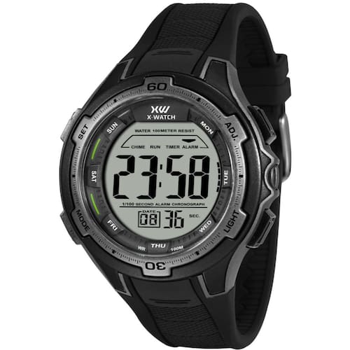 Marca: X-Watch Referência: XMPPD738 BXPX Gênero: Masculino Cor da Pulseira: Preto Cor da Caixa: Cinza escuro Material da Pulseira: Silicone Material da Caixa: Policarbonato Tamanho da Caixa: 52 mm de diâmetro Resistência à Água: 10 ATM (100 metros) Tipo de Movimento: Digital Características do Vidro: Acrílico Marca: Não Informado