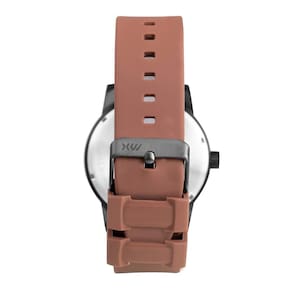 Características: com caixa em Aço Inoxidável e pulseira em Silicone Marrom