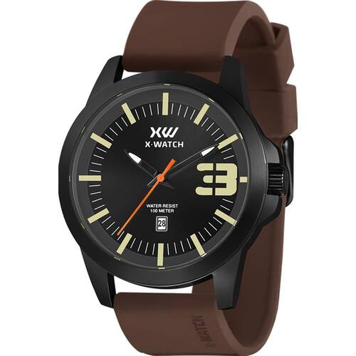 Características: com caixa em Aço Inoxidável e pulseira em Silicone Marrom