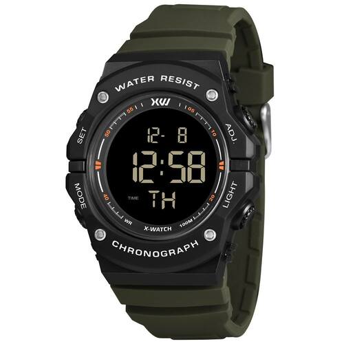 Características: com caixa em Resina Preta e pulseira em Silicone Verde