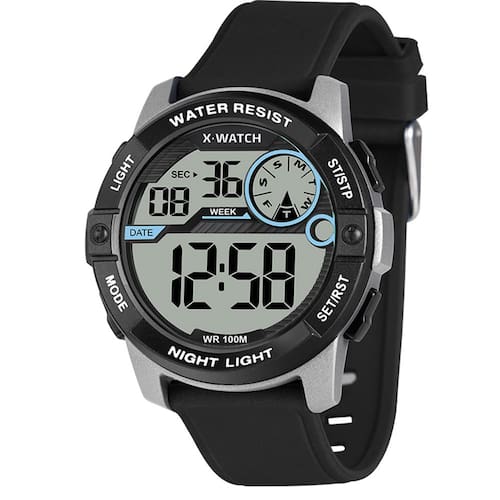 Funções: Digital, Cronógrafo, Alarme, Timer, Calendário, 12/24 h, Iluminação