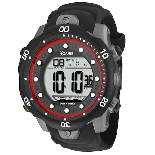 Relógio Masculino X-Games XMPPD355-Bxpx Informações Básicas - Marca: X-Games - Referência: XMPPD355 Bxpx - Gênero: Masculino - Garantia: 1 Ano em Toda Rede de Assistência Técnica X-Games no Brasil Características - Composição do Vidro: Acrílico -Material da Caixa: Plástico - Material da Pulseira: Borracha - Cor da Pulseira: Preta - Tampa Posterior: Parafusado Medidas - Diâmetro da Caixa: 5,3cm Resistência a Água - Wr: 100 Mts Funções Especiais - Alarme - Calendário Digital - Cronógrafo Digital - Dual Time