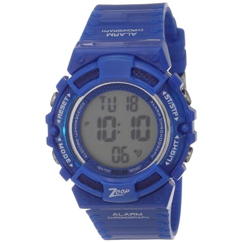 Este relógio digital para crianças tem um mostrador cinza, de capa com uma base de aço inoxidável. A alça tem um fecho de fivela de plástico azul, fornecendo o máximo de conforto e aderência para o usuário. É equipado com uma internacional de 12 meses de garantia e uma capacidade de resistência à água até 10 ATM. O calendário mostra o dia e a data que é sua característica única.