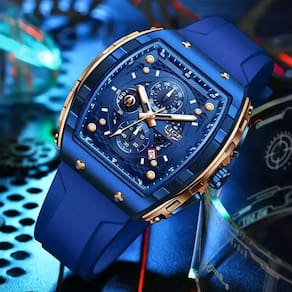 Relógios Masculino Lige 89148 Quadrado Esportivo Azul