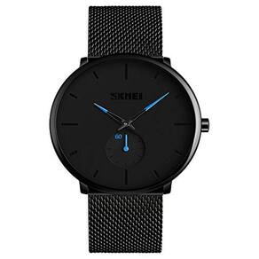 O design minimalista, relógio preto puro, ponteiros de relógio azuis, pequeno submostrador para exibição semanal, é elegante e atraente. Com um estojo ultrafino, é fácil combinar com qualquer roupa.