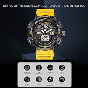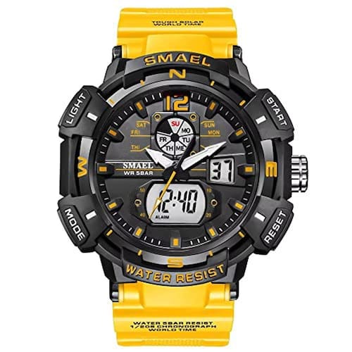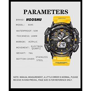 Relógios masculinos HOOSHU Relógio esportivo analógico Relógios esportivos masculinos para homens Relógios impermeáveis ao ar livre para homens Analógicos com data de exibição dupla, s multifuncionais, cronômetro de alarme LED (laranja)