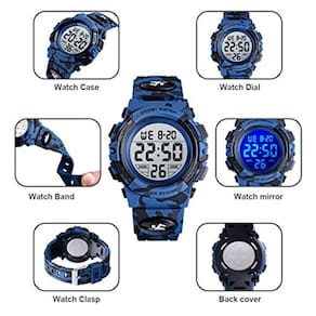 Relógio para meninos, esportes digitais, à prova d'água, ao ar livre, relógios infantis, despertador, 12/24 H, cronômetro, calendário, relógio de pulso para meninos e meninas de 3 a 15 anos - Blue Camo