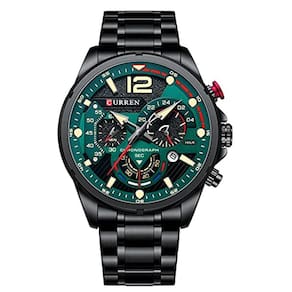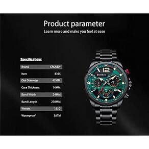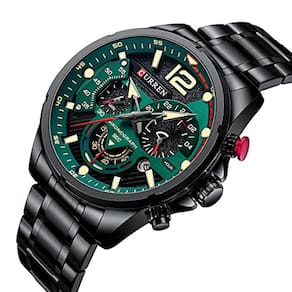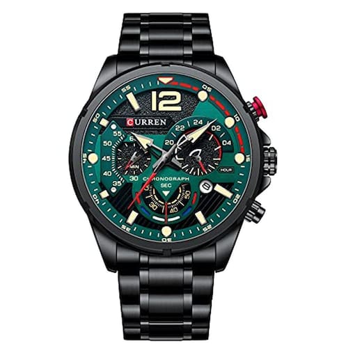 Relógios Tonnier, cronógrafo esportivo masculino, data, relógio masculino, relógio de quartzo luminoso para homem, relógio de pulso impermeável com pulseira preta de aço inoxidável, face verde