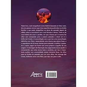 Neste livro, você mergulhará numa história baseada em fatos reais, de uma pessoa comum que viveu experiências profundas no âmbito familiar e que pode ressignificar as dores do passado depois de refletir sobre a convivência com o pai durante o câncer. Trata-se de uma história de amor e perdão, em que a busca por si mesma faz olhar com compaixão para o próprio passado e reluzir em si o brilho do Criador. A reconciliação com o pai traz uma reconciliação definitiva com Deus, reacendendo uma chama que estava fraca, e a experiência de fé trouxe clareza para entender e acolher o passado e, assim, seguir em frente com amor-próprio e orgulho da sua origem. A mensagem de libertação dos julgamentos busca ajudar a compreender que todos temos luzes e sombras, por isso é importante acolher com amorosidade nossas inúmeras faces. Ao olhar para as feridas do passado com um novo olhar, ela ressurge das cinzas, brilhante como uma fênix, que alça voo para o alto.