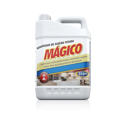 Removedor de Cera Mágico 5 litros da Start.Alto poder desengordurante e ideal para a limpeza de pisos encardidos: mármore, granito e granitina. Remove facilmente gorduras incrustadas e graxas em pisos e paredes.Vantagens e Benefícios : Indicado para uso hospitalar e em estabelecimentos relacionados com o atendimento à saúde, Indicado para a limpeza em Frigoríficos e Abatedouros,Indicado também para a remoção de ceras, impermeabilizantes acrílicos e base seladora. Produto biodegradável.