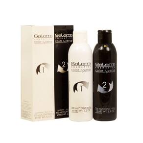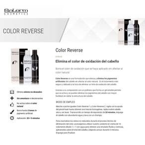 Color Reverse Salerm Cosmetics elimina cores Descrição: * 1 Color Reverse etapa 1 e 2 Salerm Cosmetics (*) Apaga a cor de oxidação que foi aplicada sem afetar a cor l (**) Produto Color Reverse é uma formulação que atenua e elimina os pigmentos artificiais do cabelo sem afetar a cor l. É o tratamento mais seguro e delicado na hora de remover um corante oxidante do cabelo. Graças à sua composição com um polímero que forma um gel estável, permite sua ativação e os pigmentos capilares podem ser removidos mais facilmente sem danificar a estrutura capilar.: EMPLEMENT MODE em partes iguais Color Reverse 1 e Color Reverse 2. Agite com a ajuda da escova até obter uma mistura homogênea. Aplique nos cabelos secos e não lavados. Após um tempo de exposição de 20 minutos, enxágue o cabelo com bastante água e lave com um xampu. Para neutralizar os restos não reduzidos durante o processo técnico de remoção de cor, aconselhamos usar nosso oxidante em creme de 10 volumes diluído 1 + 1 com água para obter uma emulsão fluida e cremosa, aplicando-a em todo o cabelo e deixando agir por 5 minutos. Enxágue para finalizar.