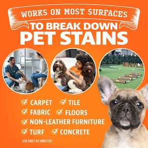 - USO EM VÁRIAS SUPERFÍCIES — Um versátil eliminador de odores e removedor de manchas de carpete que pode limpar tudo! Este limpador enzimático de várias superfícies para urina de cães funciona muito bem na maioria das superfícies, de carpetes a pisos de madeira, tecidos, grama e muito mais.