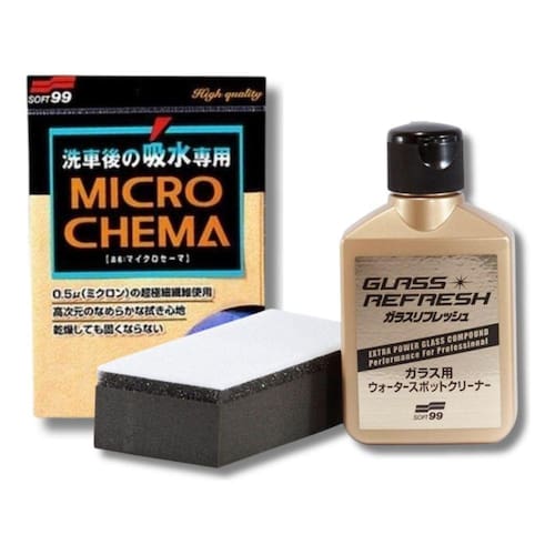 Toalha De Secagem Anti-risco + Glass Refresh 80mlO Kit Removedor de Manchas Soft 99 Para Vidros Glass Refresh é a solução perfeita para restaurar a clareza e brilho dos vidros do seu veículo. Com uma fórmula avançada, ele elimina manchas teimosas e marcas d água, deixando os vidros cristalinos. Além disso, o kit inclui a Toalha Anti Risco, que garante uma aplicação suave e segura, sem causar arranhões. Renove a visibilidade e a estética dos vidros do seu carro com facilidade e confiança usando este kit de alta qualidade.Especificações Técnicas:Toalha De Secagem Anti-risco Micro Chema 32 X 44cm Soft99• Fios de Poliuretano• Absorção Superior• Não Solta Pelos• Anti-RiscoRemovedor De Mancha De Vidros Glass Refresh 80ml Soft99• Conteúdo: 80ml• Textura: Creme• Remove Oleosidade e Descontamina• Revitaliza os Vidros, Devolvendo a Transparência e Brilho• Pode ser Utilizado em Todos os Vidros Externos, Retrovisores e Teto Solar• Produto a Base D água• Triplo Polimento com Partículas Abrasivas Limpantes de Forte Impacto• Rende Até 8 CarrosAplicação:1 - Lavar bem os vidros removendo toda areia e poeira;2 - Secar bem com uma toalha limpa e adequada;3 - Agite bem o frasco e com o lado branco da esponja, esfregue no vidro colocando pressão, verificando se o composto está agindo em cima da superfície;4 - Com o lado branco da esponja, esfregue no vidro colocando pressão, verificando se o composto está agindo em cima da superfície;5 - Se verificar que o o Glass Refresh começou a secar durante a aplicação, borrife um pouco de água para lubrificar e melhorar a aplicação. Não substitua a esponja por outro material;6 - Em caso de manchas severas ou persistentes, lave o vidro com água corrente e repita novamente a operação até atingir o resultado desejado;7 - Após finalizar o processo, lave e seque bem a esponja aplicadora para guardá-la. Sugerimos a aplicação do Glaco para cristalizar os vidros e repelir a água em dias chuvosos.ATENÇÃO: A pressão colocada sobre a esponja no vidro determina o grau de limpeza.Cuidados:1 - Não utilize para outras finalidades;2 - Não utilize em materiais plásticos ou do lado interno do vidro;3 - Não deixe o composto aplicado por longo tempo;4 - Não deixe secar;5 - Lave as mãos após o uso;6 - Não aplique diretamente em borrachas;7 - Não use em ambientes fechados e quentes.Conteúdo da Embalagem:• 01 Cristalizador de Vidros Ultra Glaco Soft99 70ml• 01 Feltro Aplicador• 01 Glass Refresh Soft99 80ml• 01 Esponja AplicadoraImportante:• Garantia de 273 Dias.• Valor do Kit.