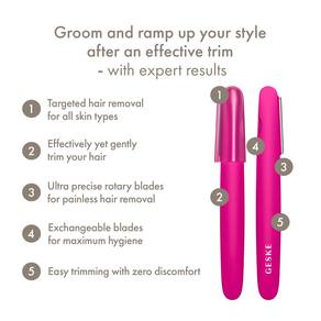 Aparador de precisão GESKE | 4 em 1 | Removedor de cabelo higiênico e indolor | Ferramenta precisa de corte de cabelo | Rosto e corpo | Homens e mulheres | Dispositivo de higiene | Lâminas hipoalergênicas e fáceis de trocar | Todos os tipos de pele - ? BENEFÍCIOS: Desfrute de uma depilação precisa e indolor no rosto e no corpo com nossas lâminas hipoalergênicas de corte de precisão. A maneira mais rápida, fácil e higiênica de aparar o cabelo sem dor! - ? INDOLOR: É hora de esquecer as depiladoras tradicionais e dizer olá à experiência de depilação mais confortável e sem dor! Nosso aparador de precisão não irrita a pele nem causa dor. - ? PRECISO: as lâminas de contorno de microprecisão garantem um corte direcionado, tornando o dispositivo adequado para áreas pequenas e grandes. - ? HIGIÊNICO: As lâminas são fáceis de trocar e adequadas para todos os tipos de pele. Assim, sua pele fica protegida contra infecções e você tem a garantia de um corte suave em todos os momentos. - ? VANTAGEM DO APLICATIVO INTELIGENTE: escaneie sua pele e obtenha sua rotina personalizada de cuidados com a pele. Descubra centenas de horas de sessões guiadas por vídeo para todos os dispositivos GESKE.