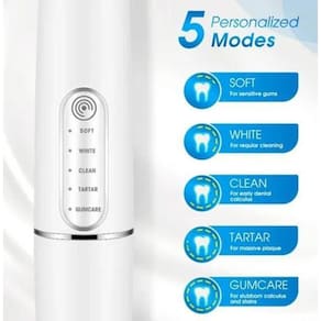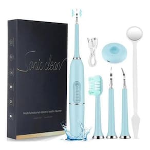Removedor de tártaro elétrico 5 funções com base carregamento azulRemovedor tártaro com 5 funções velocidade e vibrações Informações do produtoA escovação não é suficiente para manter a limpeza dos dentes, escovando-os todos os dias. Você pode achar que há cálculos dentários em seus dentes ocasionalmente. Mas se você for ao dentista, levará muito tempo e dinheiro. Portanto, você precisará de uma maneira rápida e segura de lidar com esse problema. É por isso que nosso removedor de cálculo dentário o ajudará.Características do produto:Ele pode ajudá-lo a remover as manchas de dentes e cálculo dentário. Com uso regular, você terá dentes saudáveis e hálito fresco. Feito de silicone, de qualidade alimentar abs pc e aço inoxidável desenvolvido com acabamento requintado, é seguro usar. Modo de limpeza ajustável: modo normal e modo suave para atender às suas diferentes necessidades.Sua frequência de vibração pode chegar a 10000-25000r; forte e poderoso o suficiente para remover diferentes tipos de cálculo dentárioItens da embalagem: - 1 base carregamento- 2 limpadores de tártaro - 1 espelho- 1 escovas para auxiliar na limpeza- 1 cabo usb