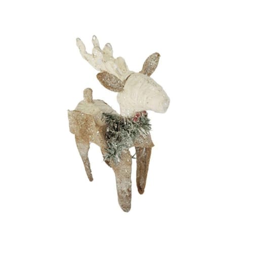 Decore com essa linda Rena decorativa de Natal com estrutura de arame revestida com ráfia e Polipropileno branco com Glitter prata e laço de ráfia com adornos no pescoço. ;Perfeita para usar sobre aparador, balcão, mesa de escritório, na árvore de natal, em guirlandas, vitrines de comércio. Uma peça maravilhosa com acabamento perfeito!