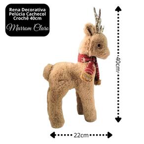 Rena Decorativa de Natal em Pelúcia Marrom com Cachecol Vermelho e Chifres Glitter – 40cm