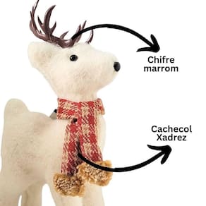 Complete sua decoração de Natal com a Rena Decorativa em Pelúcia Creme, modelo em pé com cachecol xadrez vermelho e marrom. Um enfeite elegante e acolhedor que traz o espírito natalino para qualquer ambiente.