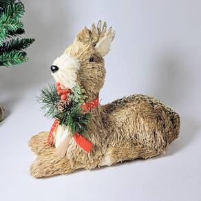 Rena Deitada De Palha Com Brilho 28x33x20cm Enfeite De Natal Vem decorar, seja INIGUAL