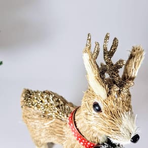Rena Em Pé De Palha Com Brilho 32X23X9Cm Enfeite De Natal