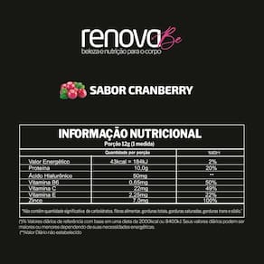 Com exclusiva tecnologia importada, o Renova Be é composto por peptídeos bioativos de colágeno hidrolisado, o único colágeno via oral específico para a pele com comprovação científica dos resultados. Além disso, possui ácido hialurônico, dando maior firmeza e textura homogênea à pele, reduzindo as rugas e linhas de expressão, além de prevenir o envelhecimento. É rico em vitaminas, minerais e fibras voltados para a saúde da sua pele.