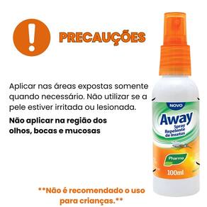 Aplique o Repelente Away Spray diretamente sobre a pele exposta, mantendo uma distância de cerca de 15 cm.