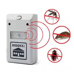 Dispositivo elétrico para afastamento de pequenos animais e insetos, com funcionamento por emissão de ultrassom.