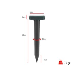 O Repelente solar é projetado para repelir possiveis pestes de aproximar da area desejada, tais como cobras, topeiras, ratos e roedores, utilizando ondas ultrassônicas em conjunto de vibrações. Para melhor desempenho do produto não os posicione um ao lado do outro. Mantenha uma distancia de até 30 metros. Apenas utilizar em lugares onde o sol consiga atingir o Repelente Solar para que o mesmo possa fazer a recarga de bateria durante o dia. Atenção: Este anúncio é referente a 2 unidades do Repelente Solar Características Energia Solar / Sem Consumo de Eletricidade. Não emite substancias tóxicas Ultrassônico e vibrações. Bateria de: 600 MaH Painel: 4v Material: ABS Frequencia: 400hz-1000z (sinal escalonavel para manter a efetividade do produto) Resistente a agua. Dimensões Aproximadas: Altura: 25cm Largura do painel solar: 4cm Circunferência da base: 10cm Atenção: Este anúncio é referente a 2 unidades do Repelente Solar 3 meses de garantia contra defeito de fabricação **150gr Modelo: Repelente Caixa Branca 2 unidades