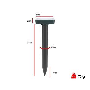 O Repelente solar é projetado para repelir possiveis pestes de aproximar da area desejada, tais como cobras, topeiras, ratos e roedores, utilizando ondas ultrassônicas em conjunto de vibrações.